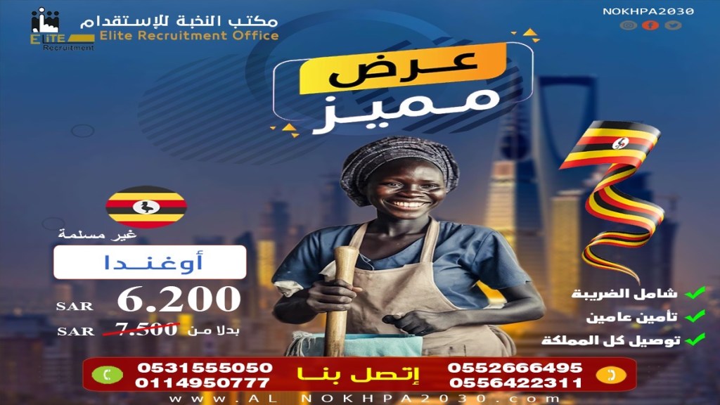 وفرنا لكم عرضًا خاصًا لاستقدام العاملات المنزليات من أوغندا بسعر **6,200 ريال سعودي