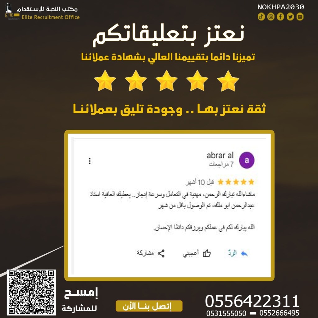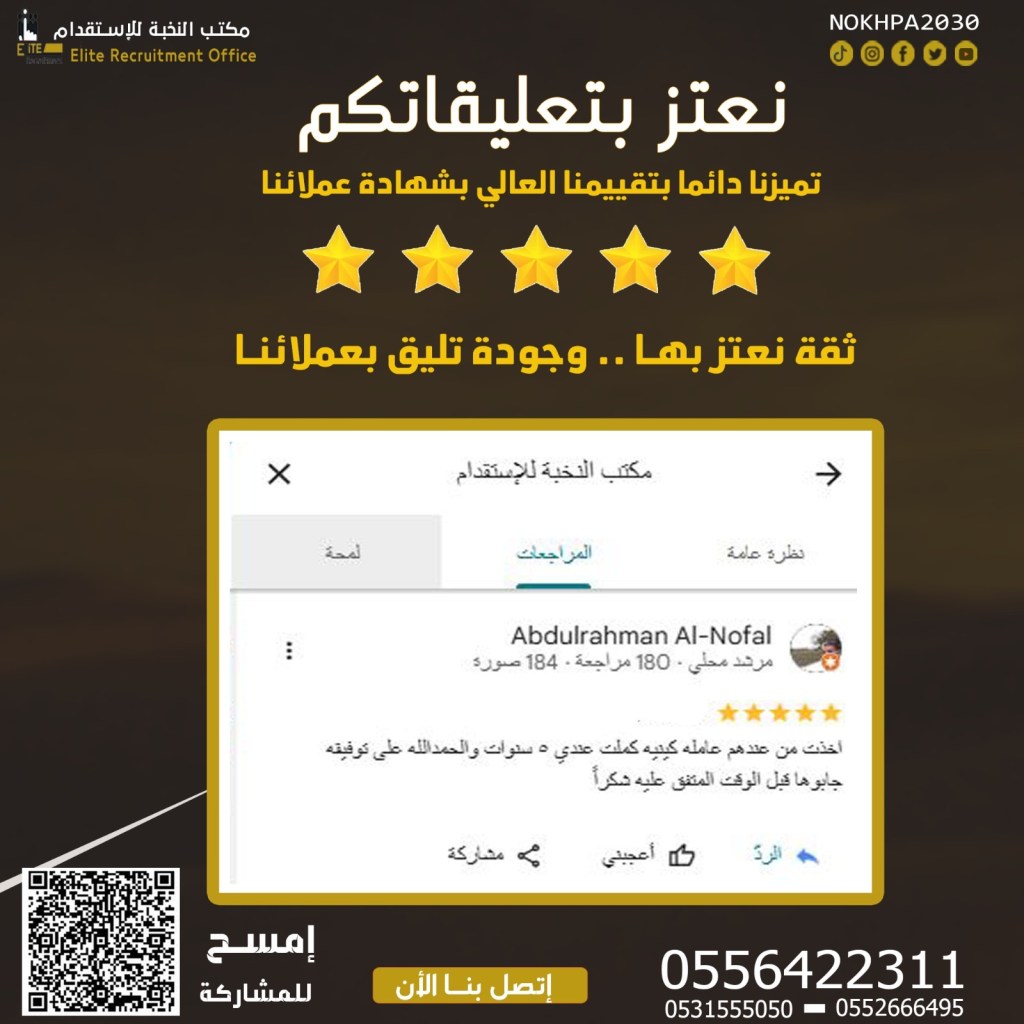أفضل مكتب استقدام في السعودية | مكتب النخبة للاستقدام تقييم 5 نجوم