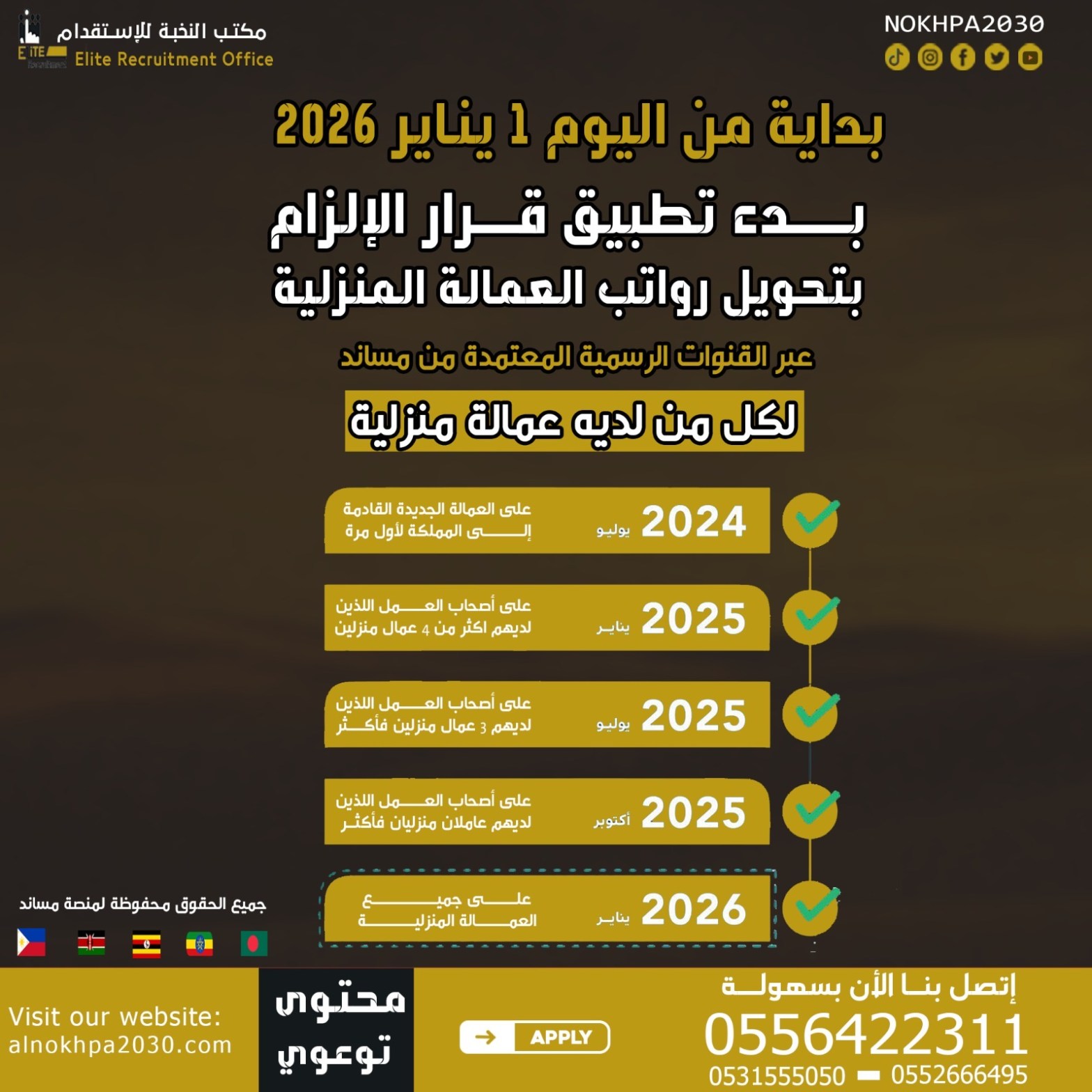 تطبيق قرار إلزامي بتحويل رواتب العمالة المنزلية عبر مساند بداية من 1 يناير 2026