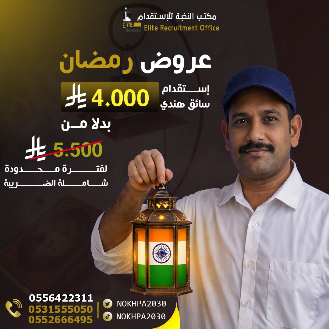 استقدام سائق خاص هندي في السعودية 4000 ريال | عرض رمضان 2026 – أفضل مكتب استقدام سائقين