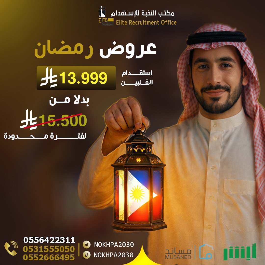 عروض رمضان 2026 | استقدام بنغلاديش 7000 بدل 8500 + استقدام الفلبين 13,999 بدل 15,500 | مكتب النخبة للاستقدام