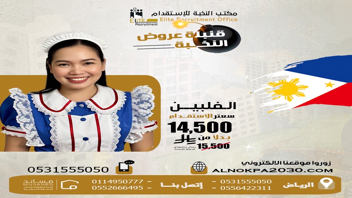 استقدام عاملة منزلية فلبينية مع النخبة: الجودة والموثوقية بأسعار خاصة – للتواصل: 0531555050