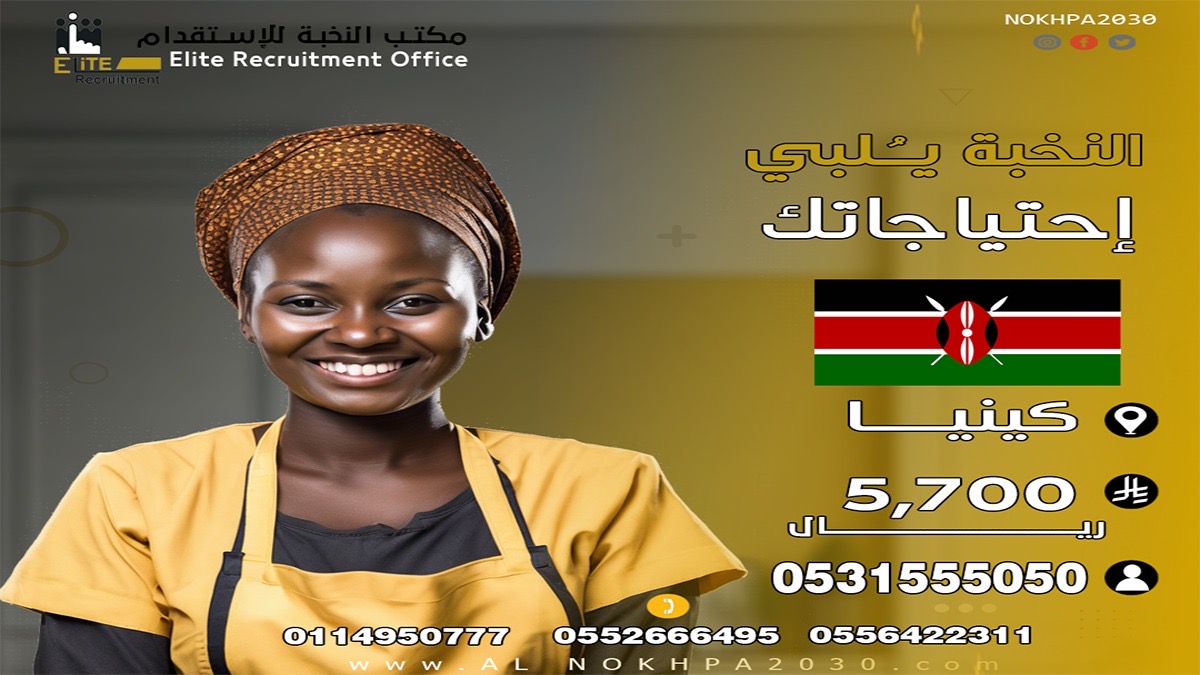 أفضل مكتب استقدام عمالة منزلية من كينيا بالرياض | النخبة للاستقدام 0531555050