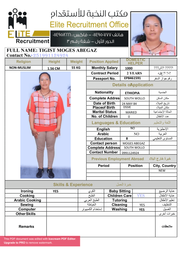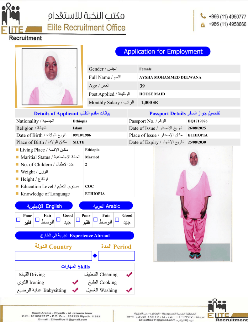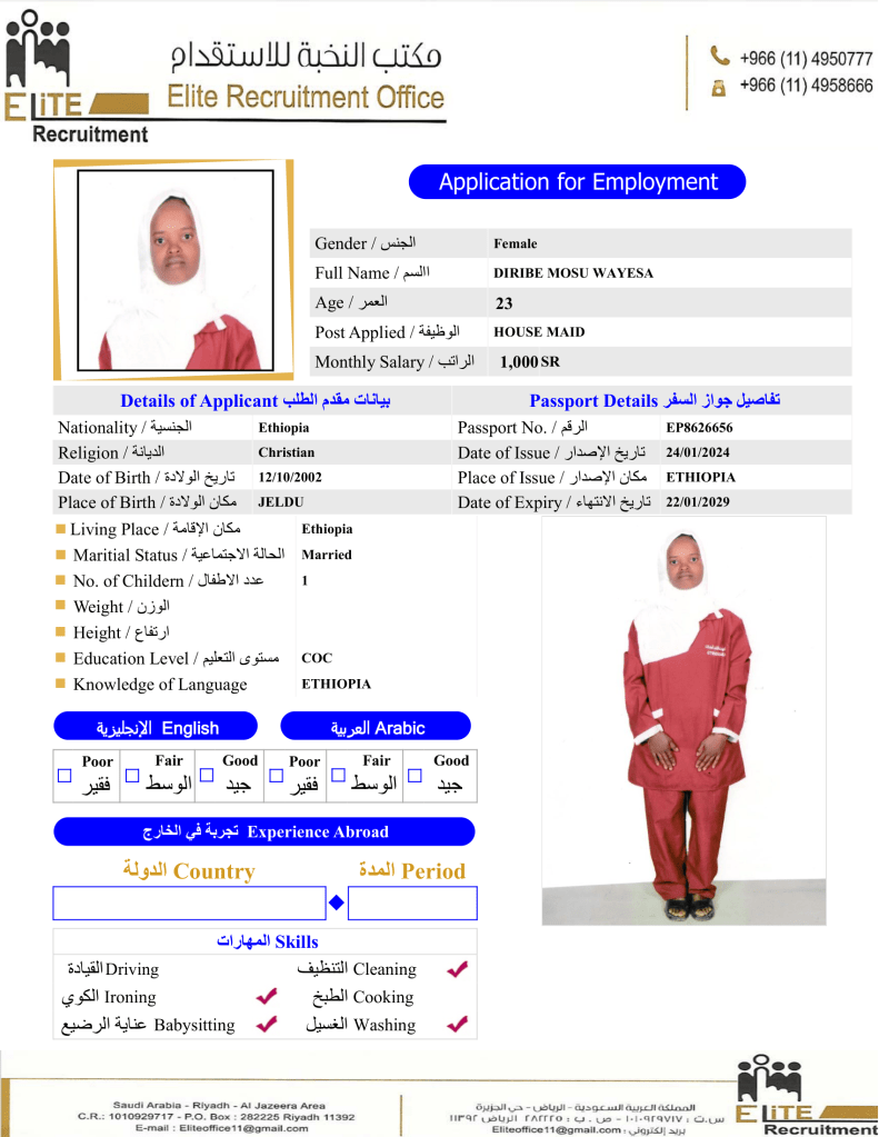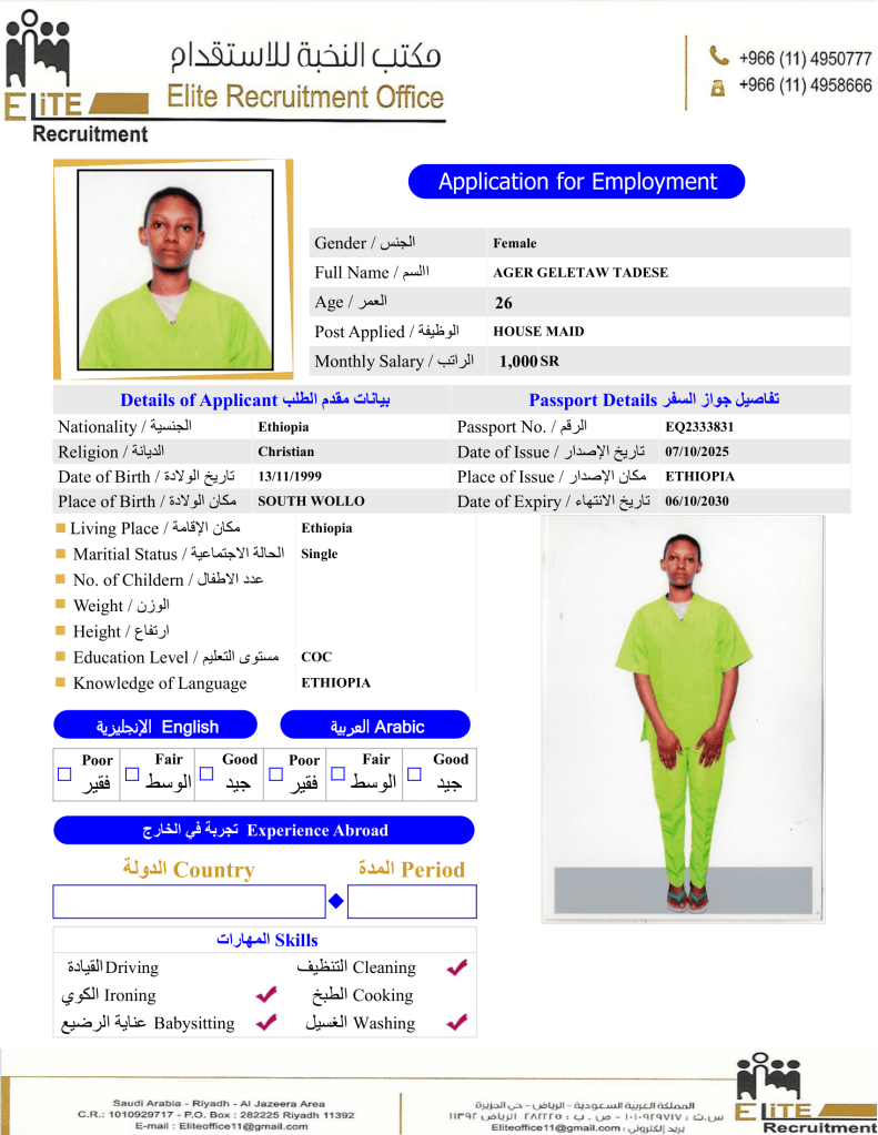 إختر عاملتك المنزلية الإثيوبية عبر متخصصين بمجال الاستقدام من مكتب النخبة خبرة اكثر من 10 سنوات بمجال استقدام العاملة المنزلية بسعر العرض الحالي بالمكتب.
