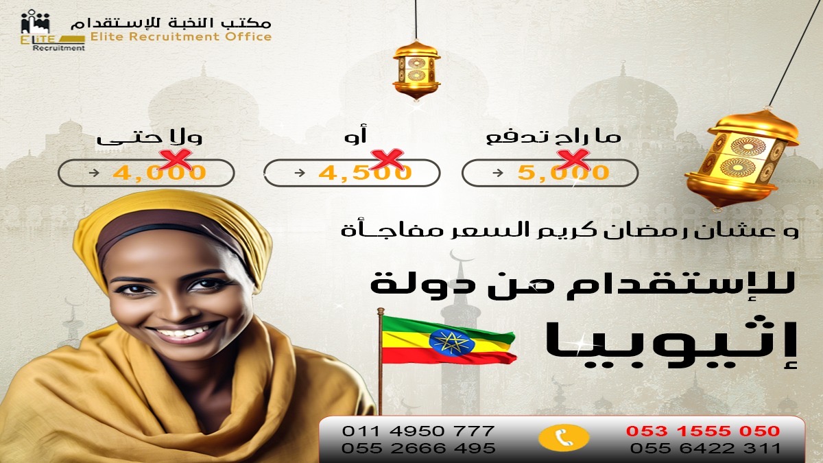 🔥 استقدام عمالة منزلية من إثيوبيا بأقل سعر – مفاجأة رمضان من النخبة! 📞 0531555050 🔥