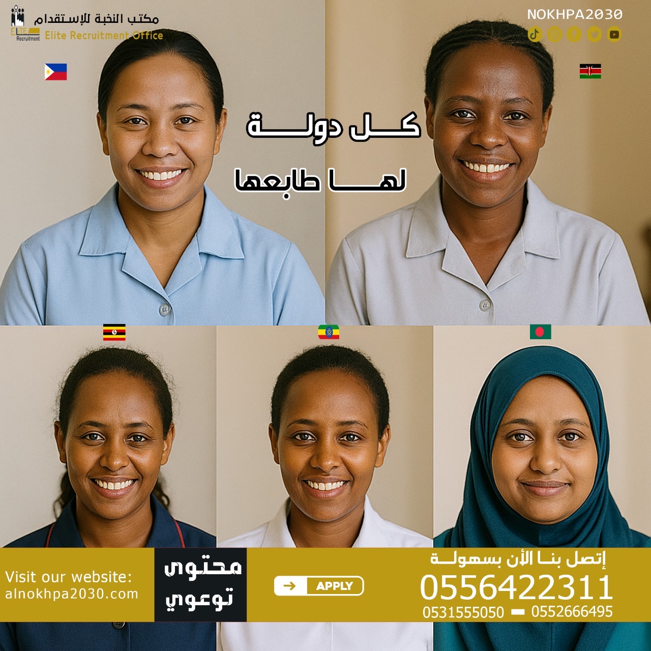 استقدام العمالة المنزلية من الفلبين وكينيا وإثيوبيا وبنغلاديش وأوغندا – لكل دولة طابعها الخاص وخبراتها المميزة، ومكتب النخبة للاستقدام يوفّر الأفضل بخدمة نظامية ومضمونة عبر منصة مساند الرسمية. للاستفسار تواصل الآن على رقم الجوال 0556422311 – نخبة في الخدمة وراحة بالك مضمونة مع مكتب النخبة للاستقدام